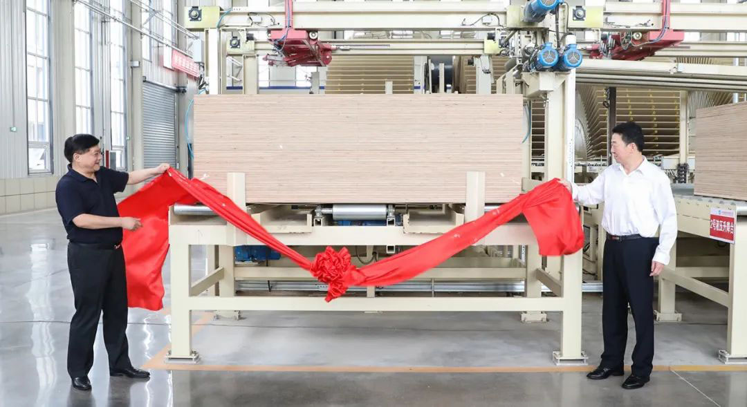 山东省“黄瓜自慰视频宜居”重大科技示范工程——可饰面木质重组材料项目产品下线仪式在汪沟镇举行
