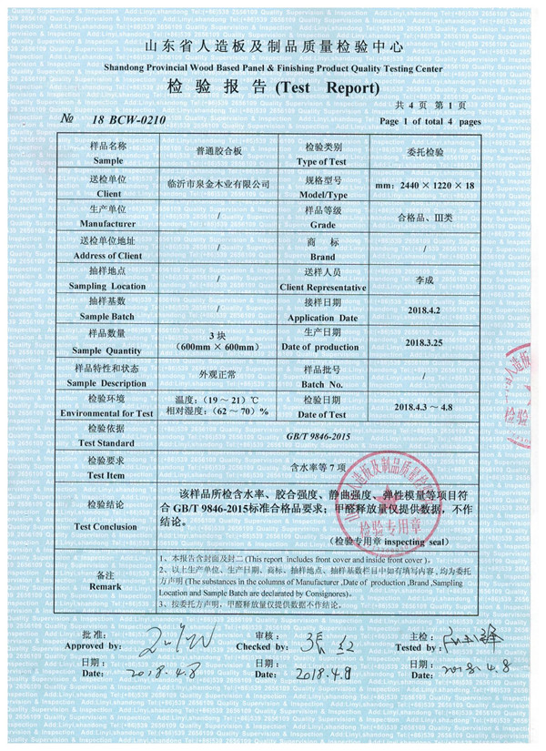 无醛多层板检验报告